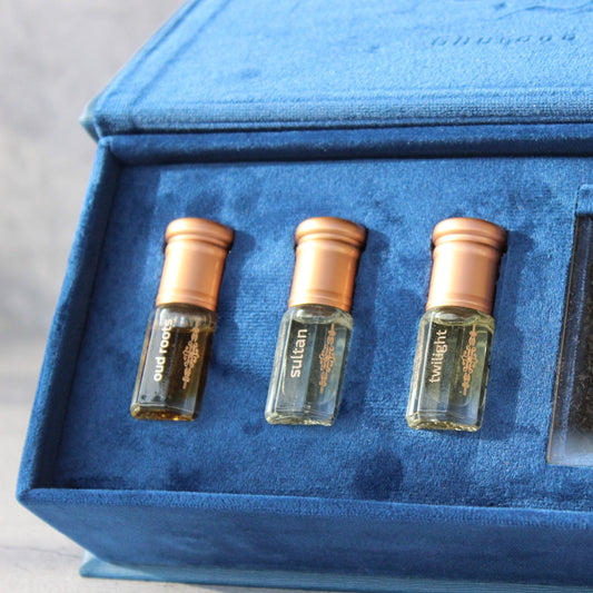 Designed for luxury, The Ghuroob Blends Collection is a masterpiece of multiple high quality oils crafted from the finest ingredients to bring you a unique scent experience. Blending classic fragrances with modern twists, this exclusive gift collection offers something for everyone. You can even mix and match scents to create the perfect combination. Experience the luxury for yourself, with this exquisite collection!